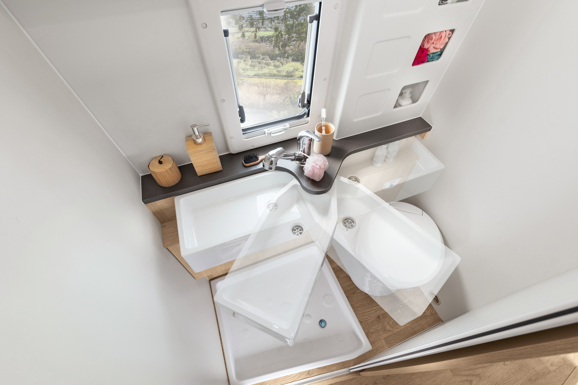 -Badezimmer mit großer separater Dusche und drehbarem Waschbecken